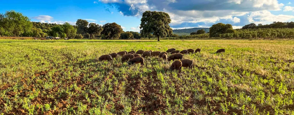 Estos animales se crían en libertad en las dehesas, alimentándose de pastos naturales y bellotas, lo que contribuye de forma decisiva al sabor y a la jugosidad del producto final. Su capacidad de infiltrar grasa en el músculo favorece ese característico marmoleado que distingue a un auténtico jamón ibérico.